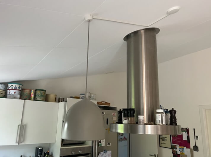 En tidligere kunde vendte tilbage til os, da de nu ville have støjdæmpning flere steder i deres hjem. Det var 5 år siden vi lavede et akustikloft i deres køkken-alrum.